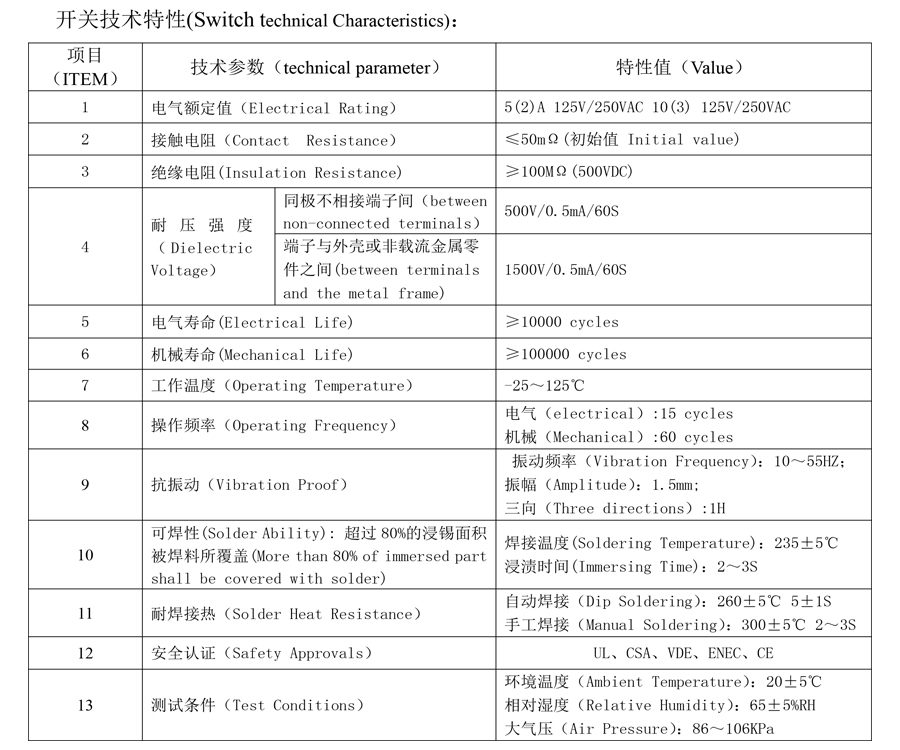| 1 | Elektrické hodnotenie | 5(2)A 125V/250VAC 10(3)125V/250VAC | |